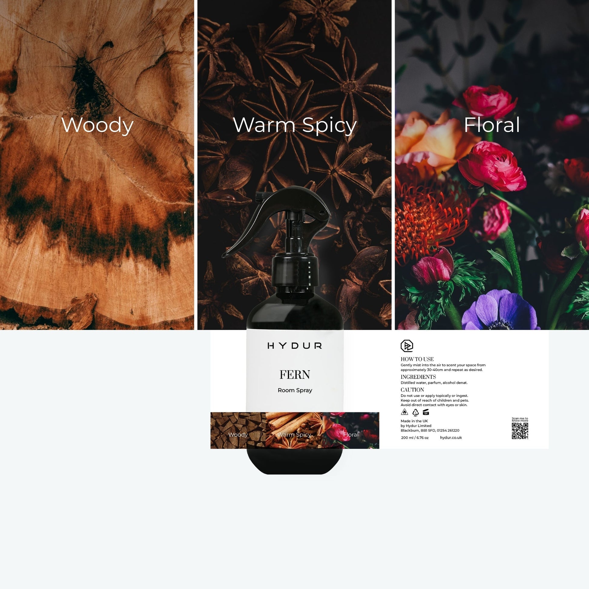 The Fern room spray offers a captivating blend of floral and woody notes, creating a delightful sensory experience. The heart notes, enriched with spices, reveal a delicate elegance. A hint of cinnamon intertwines with patchouli and cedarwood, adding depth and a revitalizing woody aspect. The balance of patchouli and musk provides a harmonious and splendid finish. The Fern room spray is an emotive journey that lingers like a cherished memory.